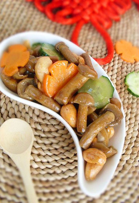 【辅料】:黄瓜一根胡萝卜一个腰果适量(可以多放些)
