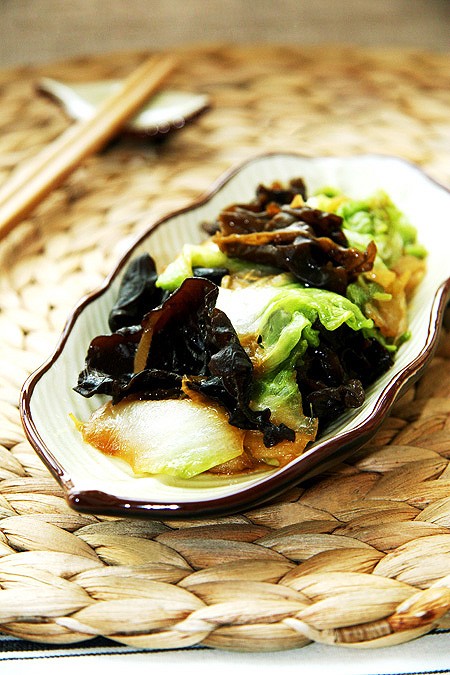 5、放入泡好的木耳,翻炒几分钟,撒少许盐、蘑菇精翻炒均匀,出锅即可。