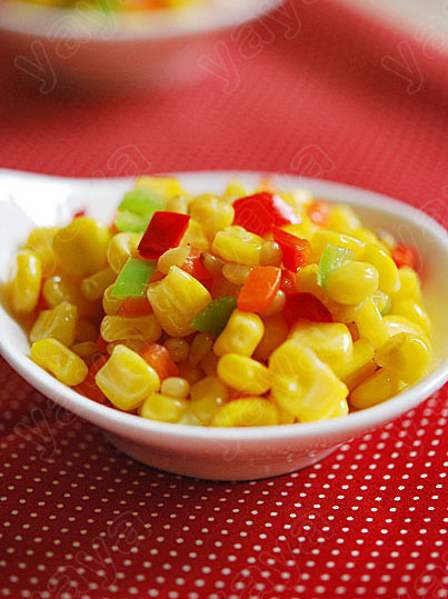 超市松仁玉米套装一袋、胡萝卜、青红椒各50g。