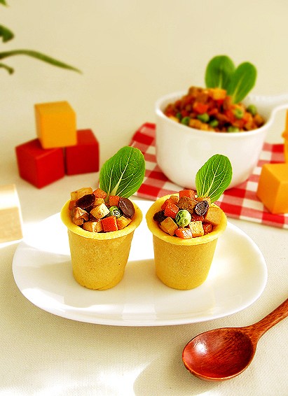 材料:素肉......200克、胡萝卜......200克、豆腐干......100克、豌豆......少许(或者换成芹菜丁)
