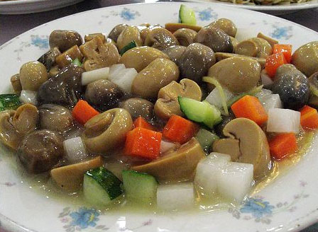 2、蜜豆、鲜冬菇、本菇、鲜百合、珍珠笋洗净,