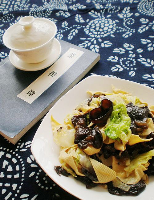 材料:白菜,木耳,干豆腐,酱油,盐,蘑菇精,糖