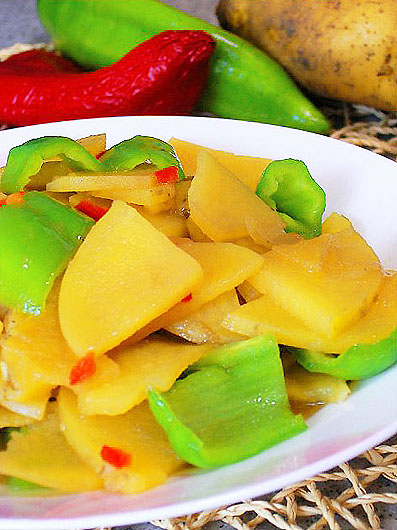 1.土豆切片然后在水中泡5分钟。青椒切片,红辣椒切末。