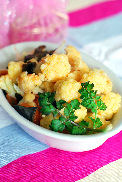 2.菜花焯水,撒入少许盐,焯至7分熟,捞起备用。