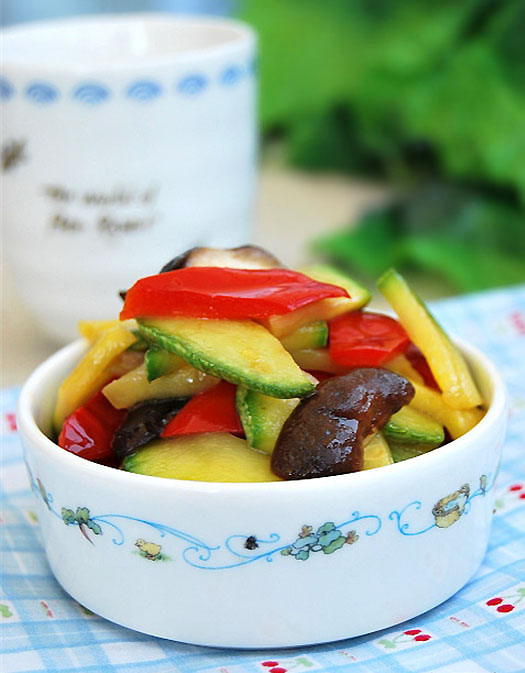 【材料】西葫芦鲜香菇 红椒(甜辣皆可)