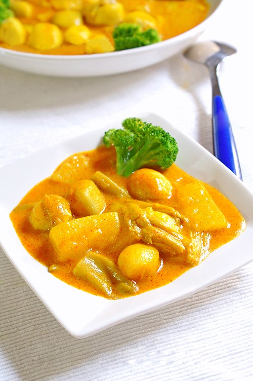 调料:咖喱粉、椰浆、豆奶、辣油、姜片