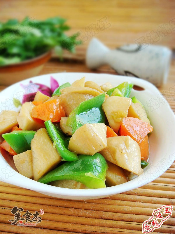 主料:杏鲍菇3个、青椒1个、胡萝卜1根