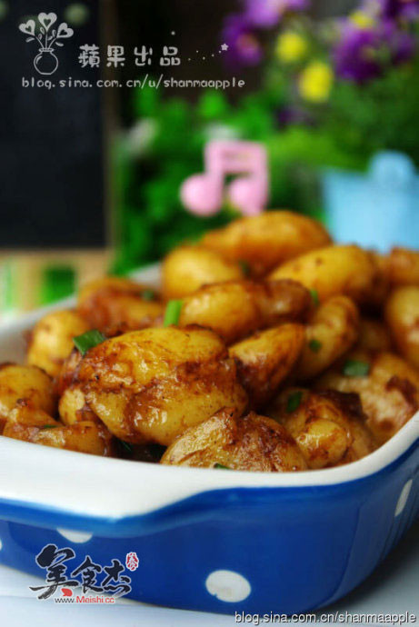 第2步锅热油,将小土豆放入翻炒一小会儿,然后加盐、红烧酱油继续翻炒均匀;加少许高汤(清水也可)焖一分钟入味即可