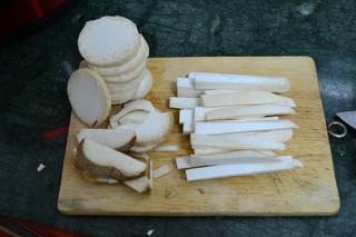 小窍门:菜摊的老板说,杏鲍菇用切条吃起来比切片口感更好,酒店很多都用手撕,风味更佳,但其实我觉得差不多哈