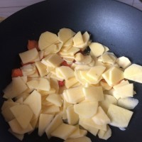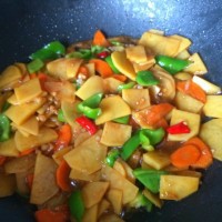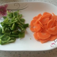 8. 青椒下锅,稍稍加一点儿水翻炒,最后调入芝麻油出锅。