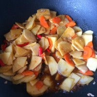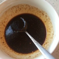 4. 调碗料汁:白糖一勺、香醋一勺、生抽3勺、面酱一勺、盐适量、椒盐适量