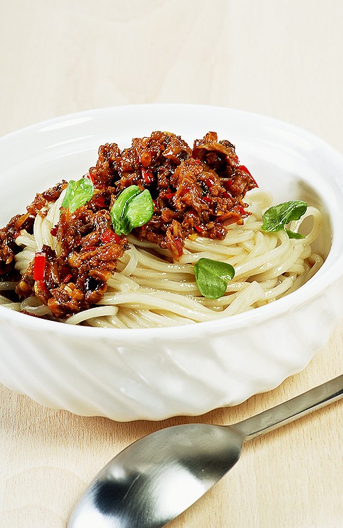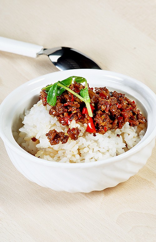 5.四川豆瓣辣酱、四川泡椒剁成细末待用。