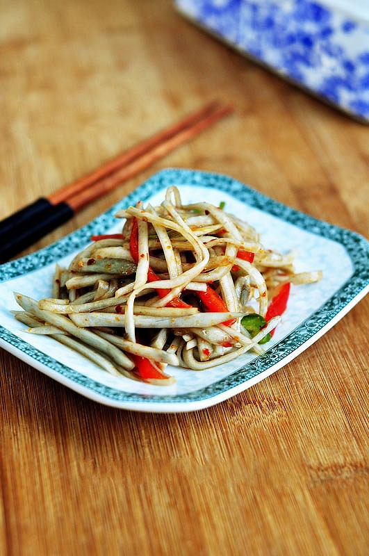 11、放一点自己做的油泼辣椒,仔细拌匀即可。。
