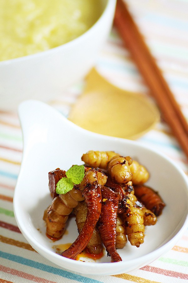 6、食用前,取干净无水的筷子将其夹出,然后调入适量辣椒油和芝麻油及生抽拌匀