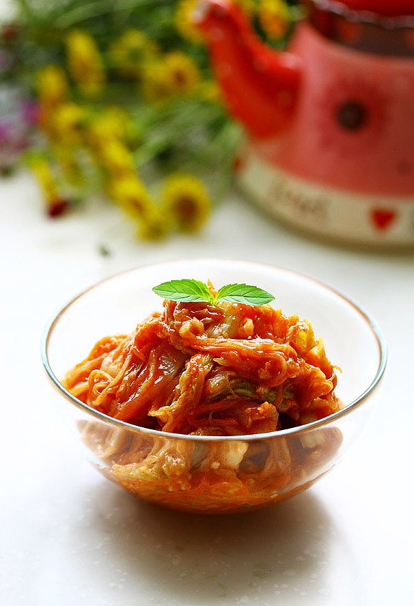 1、原料:白菜1500克、白萝卜500克、胡萝卜200克、蒜末3大勺、姜末1勺、韩国辣椒酱500克、辣椒粉1/4杯、梨汁半杯、白糖1勺、海盐半杯。