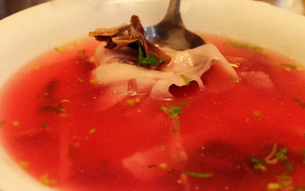2、锅中加水煮开放入削好的山药片煮开后、加入洗干净的红菇煮开加入盐、蘑菇粉、滴上几滴油,再小火煮五分钟左关火撒上香芹末出锅倒入汤碗中即可。