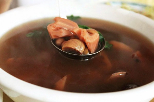 2、将所有的原材料放入煮汤的砂锅加入水煮开后加入调料、加入少许油、盖上锅盖,开小火慢火煲一个半小时左右,出锅盛入汤碗中撒上少许香菜即可。