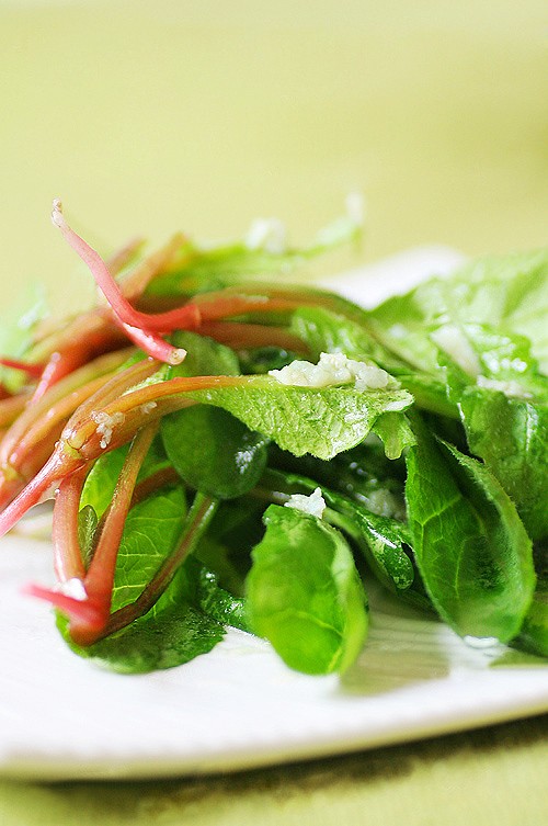 1、新鲜水萝卜秧,冲洗干净,沥干水分