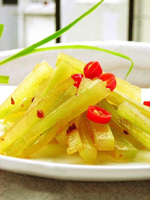 材料:冬瓜皮、你自己喜欢的调味料~~放辣椒是为了好看