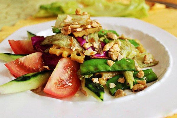 主料:紫甘蓝、球生菜、莲藕、荷兰豆、西红柿、黄瓜、腰果、
