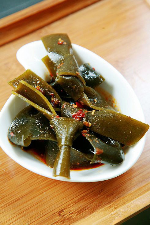制作方法就是将卤质好的海带放入,陈醋,蘑菇精一勺老干妈辣椒酱拌匀就可以了。