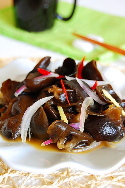 【主料】泡软的黑木耳250克、个、红辣椒1个、嫩姜2片