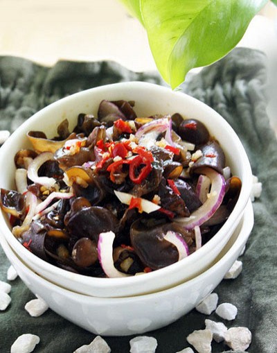 原料:木耳2把(用手抓的),剁双椒各1.5大匙