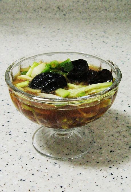 材料:黄瓜、金针菇、木耳、姜。