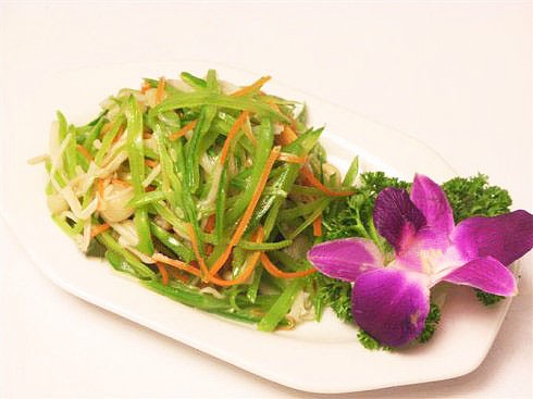 做法:荷兰豆跟胡萝卜切丝,金针菇切段,将切好的原料出水冲凉挤干,加入调料拌匀,按个人口味斟调,然后装盘既可!