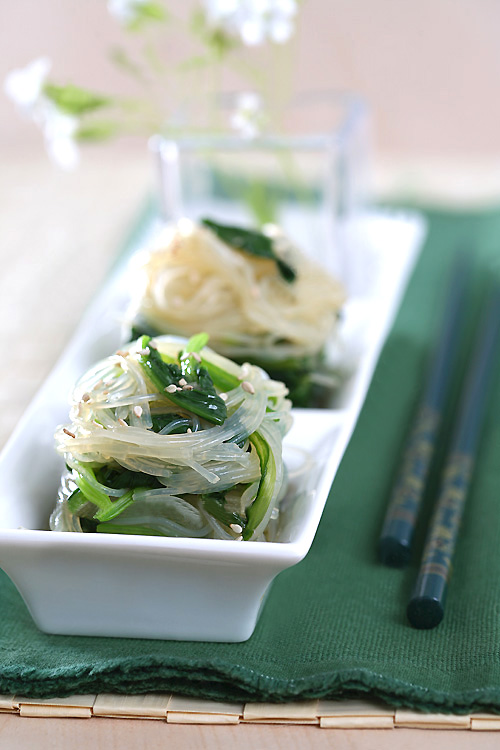 3)将米醋,生抽,盐,糖和香油搅拌均匀后,淋入菠菜和粉丝中,再搅拌均匀即可,吃前撒上一些白芝麻,味道更好。