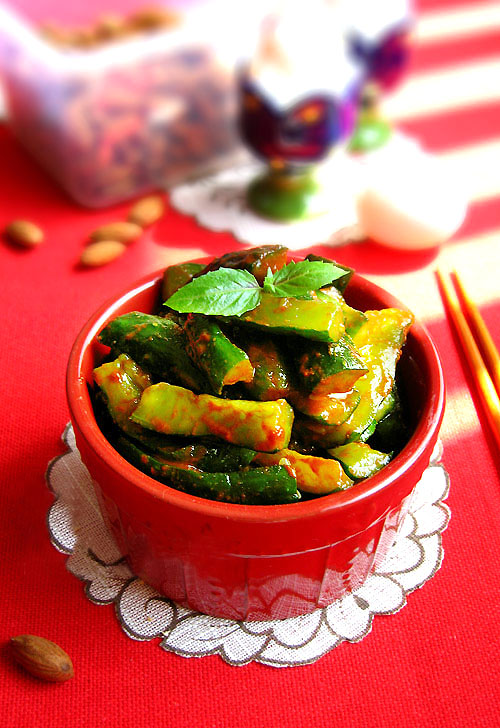 用清水浸泡一夜,拌上甜辣酱淋上麻油,青翠爽口又新鲜的腌黄瓜就可以吃了。