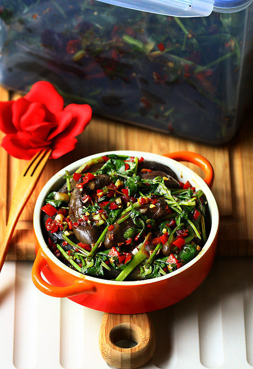 材料:小茄子1500克、剁椒酱200克、香菜100克、酱油2勺、味噌酱6勺、白糖1勺.