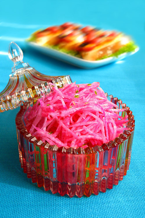 1、洗干净心里美,去掉萝卜皮(喜欢吃有点辣味的就省掉这一步)