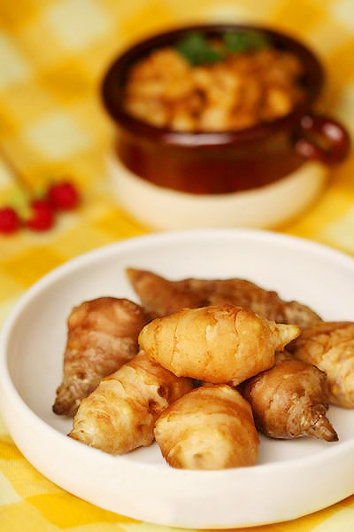 1)洋姜洗干净,把四周修剪整齐,去掉坏的地方,放进自家的泡菜坛子里,3天后可以食用。取出后切成小块,拌上辣椒油,糖,芝麻油即可。