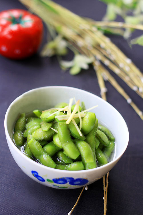 5,将姜切丝,盐15克,倒入适量的冷开水,倒入毛豆,泡3个小时可食。