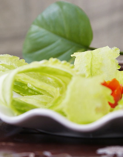 3、冰镇后的苦瓜片沾上调味料后即可食用。