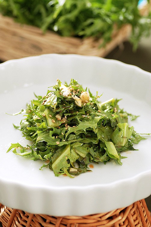 苦菊洗净切好,置其上。(爱吃辣椒的可加点小红椒。)