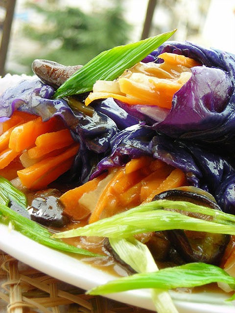 材料1:紫甘蓝、胡萝卜、白萝卜、香菇(泡好)。