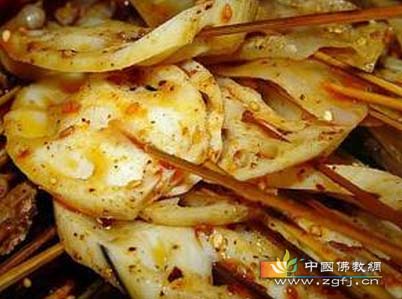 原料:粗细均匀的鲜藕1节约300克、海带5厘米的1块、红辣椒1块、醋200克