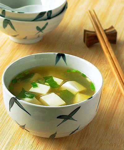 材料:豆腐一盒、干海藻5克、味噌2大勺、美极鲜味汁2大勺、盐少许。