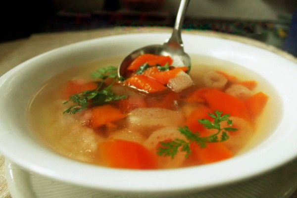 2、将准备好的木瓜、竹荪、草菇、放入汤碗中放入盐、蘑菇粉、滴上几滴油、加入开水放入蒸笼蒸两个小时