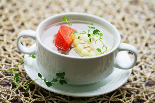 然后放入红枣、枸杞、花椒、大火将汤煮开后,转成中火炖30分钟;
