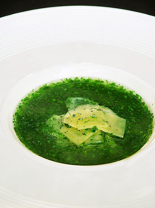 (3)起锅,锅里放水,水开之后放冬笋薄片,略煮片刻调味打薄芡,然后放入荠菜末搅拌淋一二滴麻油出锅装入汤碗中即可。