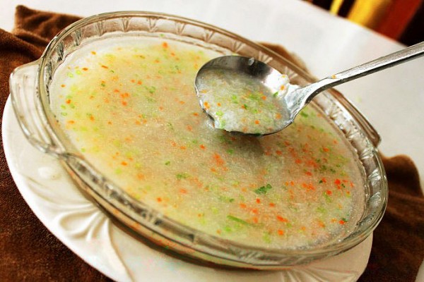 煮开调好味道再放入做好的山药泥、撒上香芹末、淋上少许芝麻油、搅均匀出锅、装入盛器中即可。