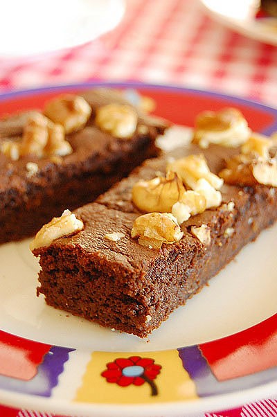 5、装入8寸的方形蛋糕模,上面撒些核桃碎