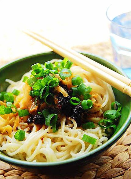 ★面条煮得稍硬起锅,盛入碗中,加盐、胡椒粉、蘑菇精、老抽少许,将切碎的榨菜放入,加入两滴香油、一匙老干妈辣酱和一匙调好的芝麻酱即可拌匀食用了。