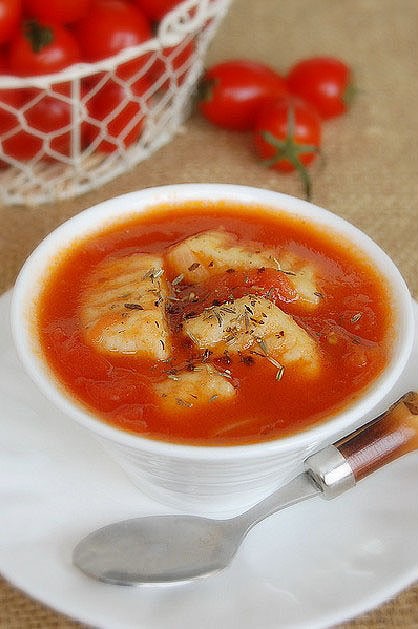 【汤汁材料】:番茄2个、番茄酱1大勺、素高汤(或水)1碗、意大利综合香料少许