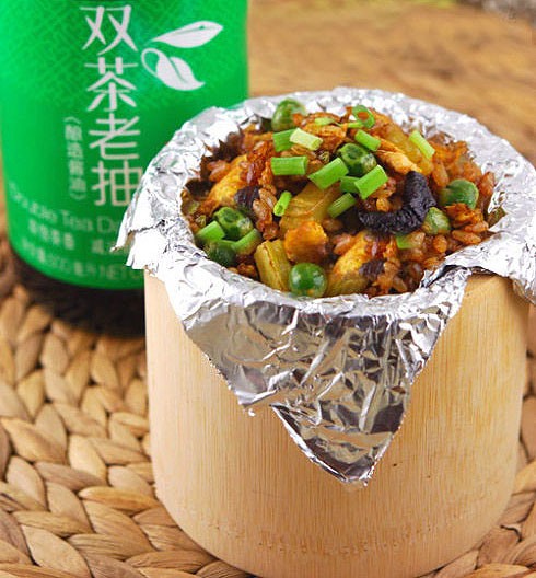 4.用手把剩米饭和双茶老抽抓捏均匀。