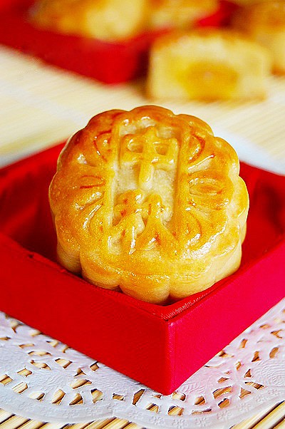 (在面团上拍一点面粉,或者用纸巾沾花生油擦拭月饼模具,都可以便于脱模)