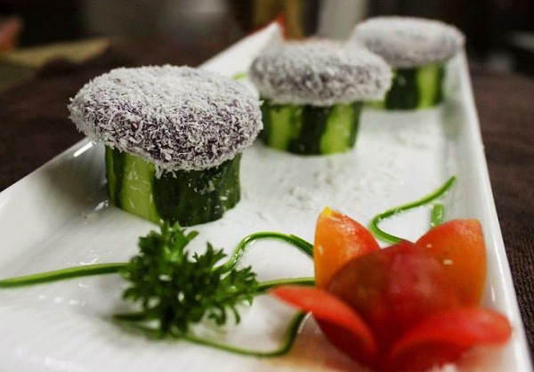 2、将揉好的面团分成小块捏成扁圆状放入盘中、(盘底要抹点油、不然会粘底),再放入蒸笼蒸十分钟左右蒸熟拿出、趁热的时候放入碗中裹上椰丝拿出装盘即可。
